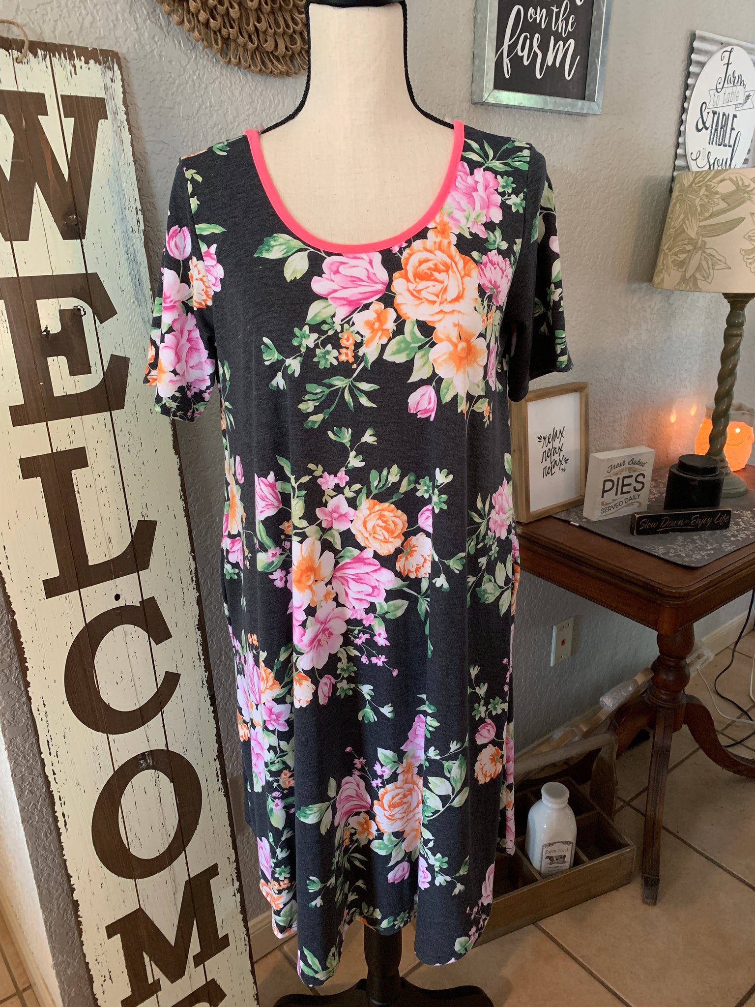 Dress charcoal background floral